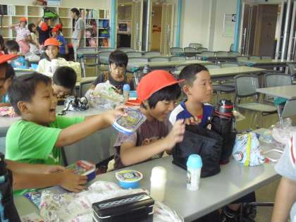 おかずを見せ合ったり、お菓子を交換したり、
