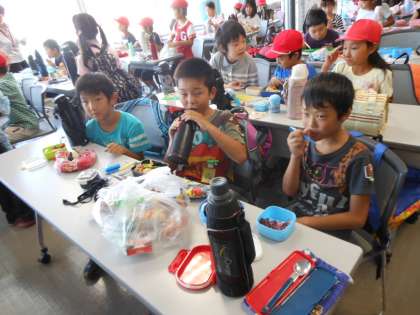 たくさん遊んだ後は、お弁当でひと休みです。