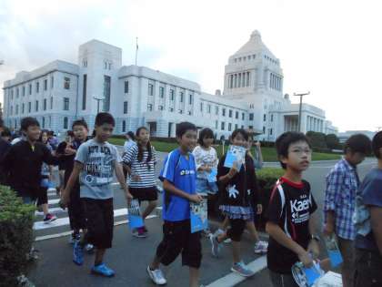 修学旅行の大きな目的のひとつである国会議事堂を見学しました。ここで学級写真も撮りました。