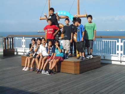 修学旅行2日目のスタートです。ホテルを出発し、東京湾アクアラインの「海ほたる」でまず一息です。
