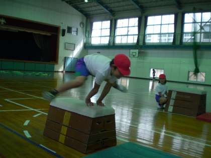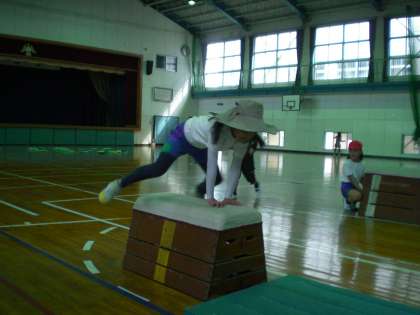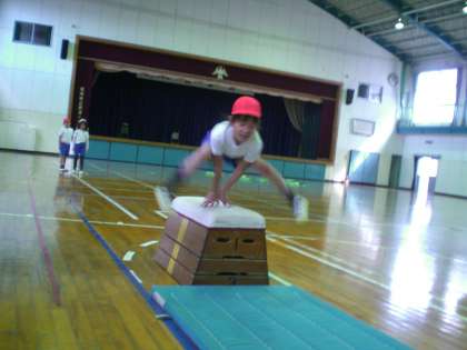 前回まで跳び箱を横にして、開脚跳びを練習しました。