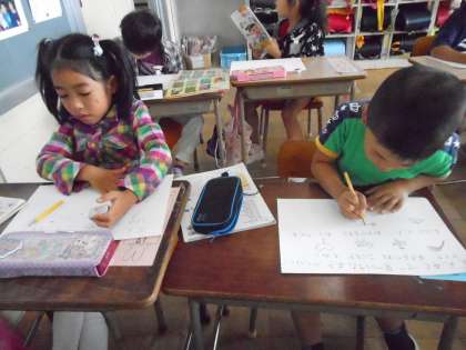遠足で見つけた秋のものを絵にかきました。