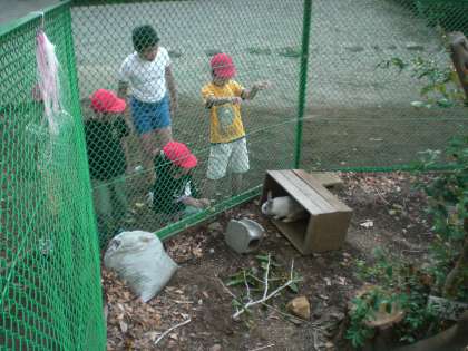 鷹の子森にある柵の中では、ウサギが遊んでいました。