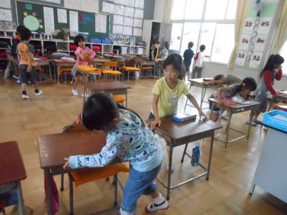 朝清掃(今日はお客さんをお迎えするので)2 1年生