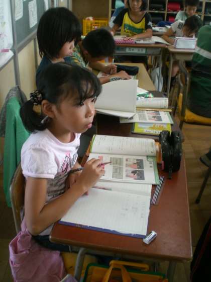切って重ねたり、消しゴムを置いたり、マス目を作ったりしながら、広さを