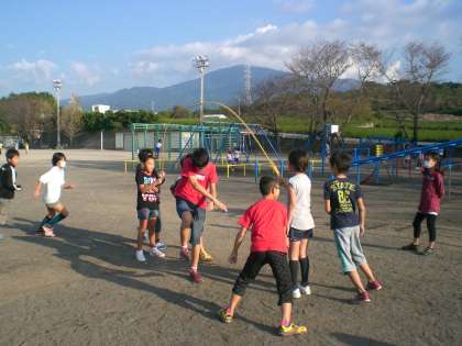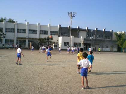 リレーの練習以外にも、長縄跳びやバスケットボール、ドッチボールなどで遊ぶ子どもの姿が見られました。