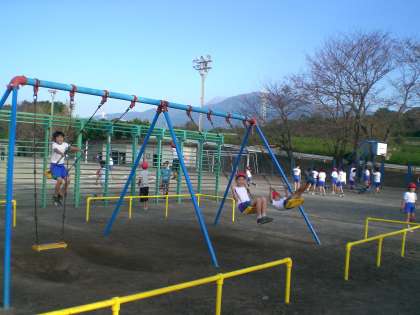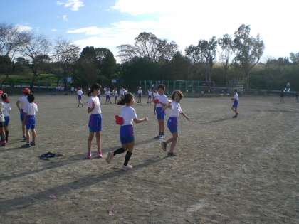 子どもたちは、遊具で遊んだり、リレーの練習をしたり…と元気に活動していました。
