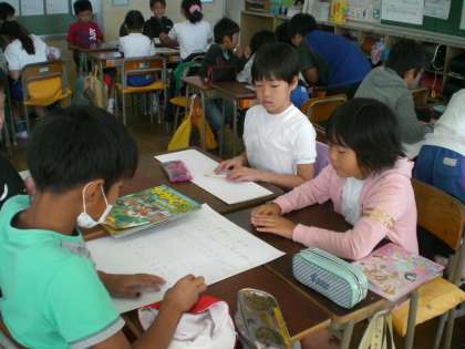 社会科見学で学んだことを生かして、クイズを作っています。消防士さんの工夫などがクイズに盛り込まれています。完成が楽しみです。