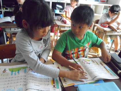 楽譜に階名の読みを書き込みました。階名で歌ってから、リコーダーに挑戦しました。合奏できるようになる日が楽しみです。