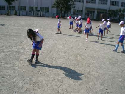 前回の体育で教頭先生に特訓していただいた方法で何度も練習しました。