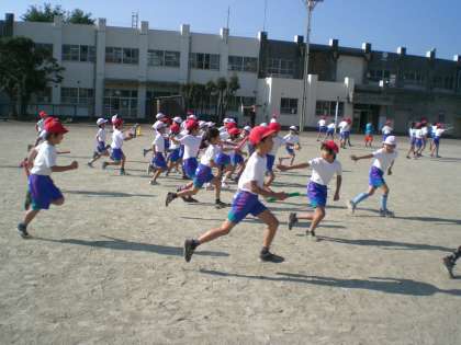 最初は、なかなかうまくいっていなかったバトンの受けわたしもどんどん上達しています。
