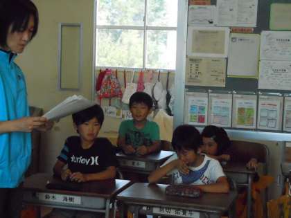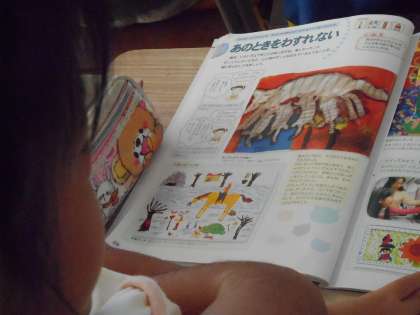 最初の時間子どもたちは、思い出の作文を書きました。