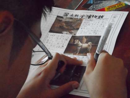 修学旅行の思い出を新聞にまとめました。写真を選び、文章もよく考えて書いています。他の6年生と同じ型式なので、字が小さくて大変です。