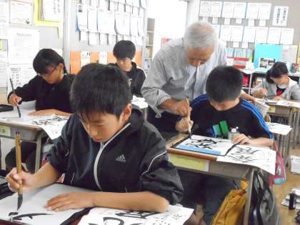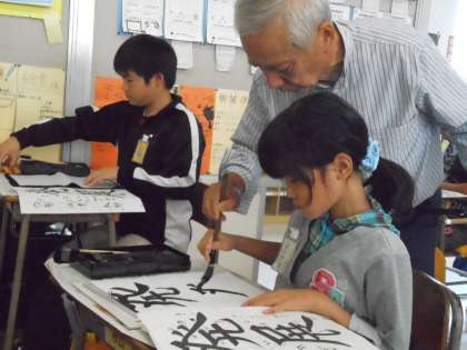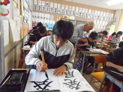 「発展」という字を書きました。和田先生から手をとって指導していただき、筆の流れがよく分かりました。