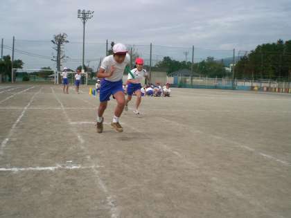 スピードを落とさずバトンパスができるように、毎日練習を頑張っています。