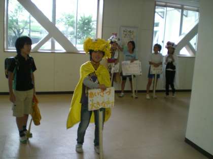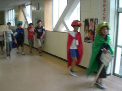 1階児童玄関付近の廊下に、ぴよ隊が出動しました。