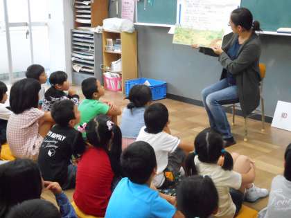 今日は2・4年生の教室で読み聞かせボランティアの方々に読み聞かせをしていただきました。