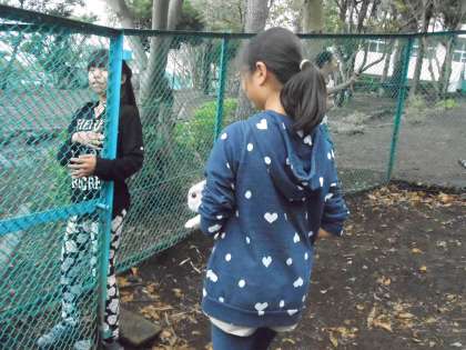 飼育委員が小屋にいるウサギと入れ替えをしていました。どちらのウサギも運動したいでしょうからね。