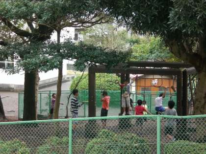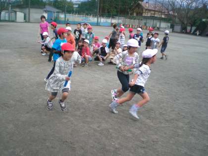 鷹の子森のアスレチックで遊んだり、運動場でリレーの練習をしたりする子どもたちの姿が見られました。