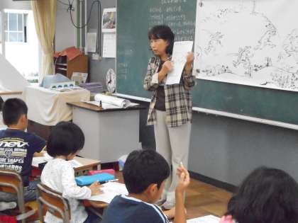 絵を見てお話を考え、吹き出しに書いたり、題名を考えたりしました。松戸市からのお客さんをお迎えし、ちょっぴり緊張気味です。