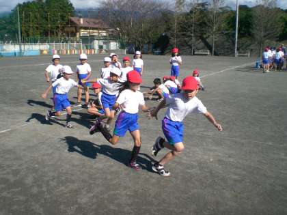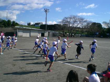 リレー大会に向けてバトンパスの練習を頑張っています。