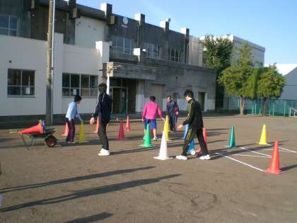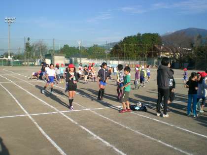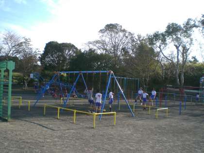 朝の運動場には、リレー練習をする3,4年生やグラウンド周辺の遊具で遊ぶ子どもたちの姿が見られました。