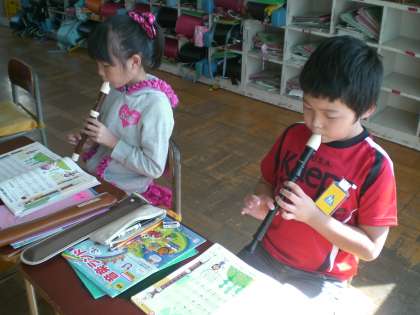 リコーダーで「ミ」と「ファ」の音が吹けるようになり、山のポルカの合奏をがんばって練習しました。