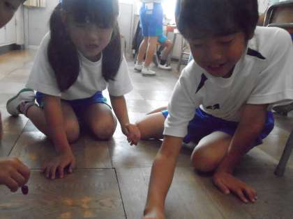試作品のどんぐりごまがくるくる回ると、子どもたちは大喜びでした。