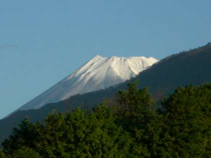 10月24日(水)の朝、昨日のぐずついた天気とは一変、すっきりと晴れています。富士山に積もる雪も輝いていました。