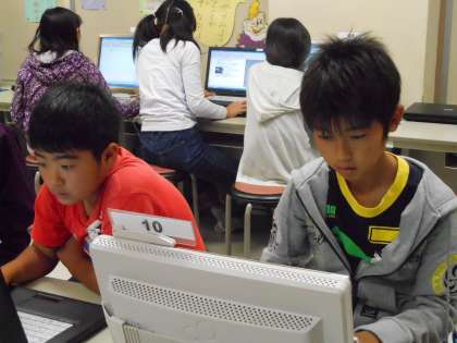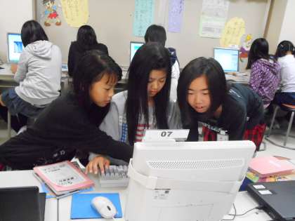 修学旅行のまとめとして新聞づくりをパソコンで行っています。各班で撮った写真を貼ったり、見出しを工夫したりして意欲的に取り組んでいます。