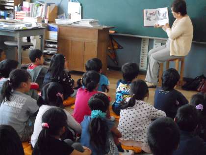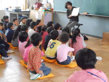 今日は1・3年生の教室で、読み聞かせボランティアの方々に読み聞かせをしていただきました。