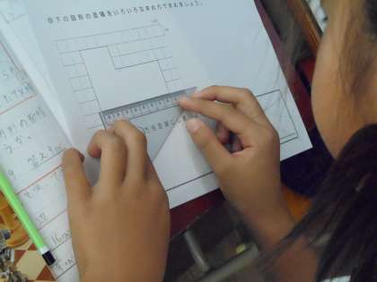 これまでとは少し違う図形の面積を求めるために、みんな頑張っていました。