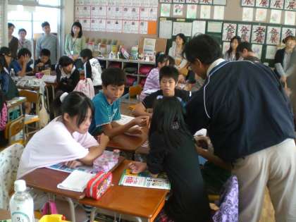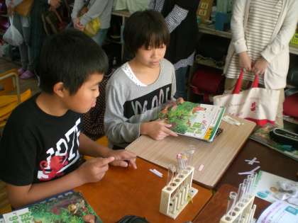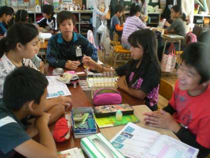 酸性・中生・アルカリ性を、リトマス紙に水溶液をつけて色の変化を見ながら調べました。