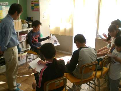 修学旅行の思い出を、パソコンでまとめました。今日はグループに分かれて発表をしました。分かりやすい写真を載せて、友達の行かなかったコースのことも伝えることができました。