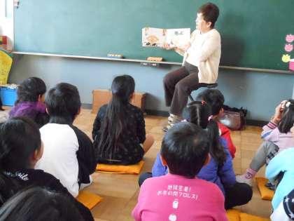 今日は1・3・5年生の教室で、読み聞かせボランティアの方々に読み聞かせをしていただきました。