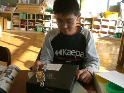 今日は、磁石の性質を使って、おもちゃ作りに取り組みました。