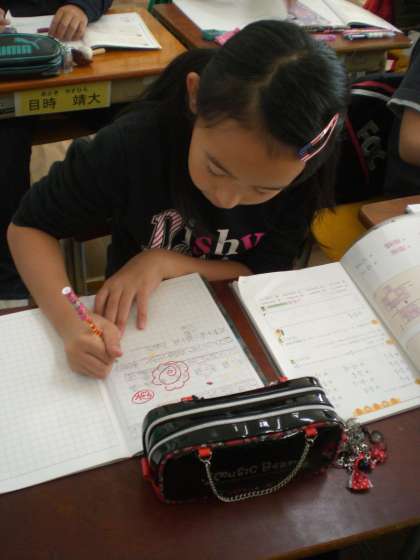 分数を使った引き算を、計算するときのポイントを確かめながら問題に取り組みました。