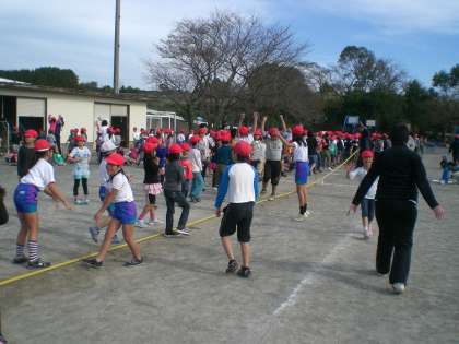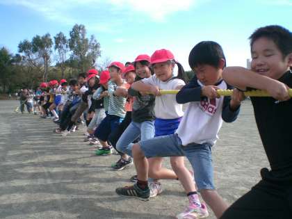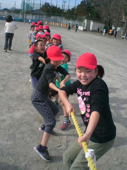 昼休みに綱引き大会が開かれました。みんながんばって綱を引き、いい試合を繰り広げていました。優勝は2組、準優勝は4組でした。