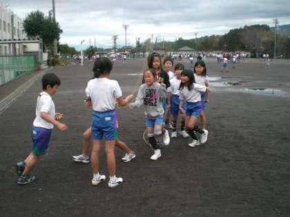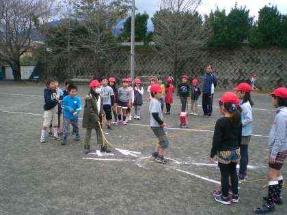 朝の運動場には、クラスの友達と長縄などで遊ぶ子どもたちの姿が見られました。