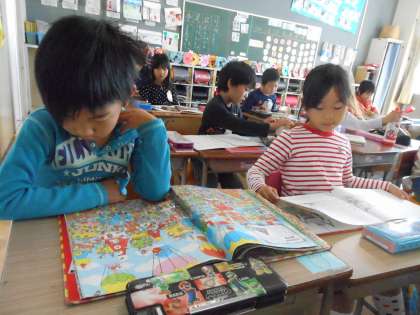 読書カードに記入して、早めに読書を始めている1年生もいました。