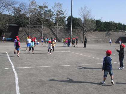 2時間目にペアで遊ぶ会が行われました。ドッジボールをやっているグループでは、4年生がとったボールを2年生に渡してあげる姿が見られたり、2年生は4年生の言うことをうなずきながら聞いたりしていました。いろいろな遊びをして楽しみました。