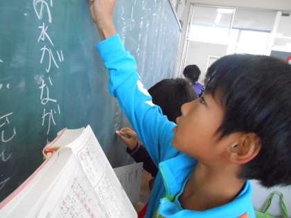 「ごんぎつね」には難しい言葉が出てきます。一つ一つ国語辞典で調べてみんなに発表しました。今日調べた言葉をもとに物語を読み進めていきます。