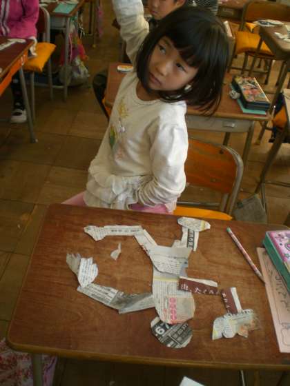 教は、紙版画の作り方を練習しました。