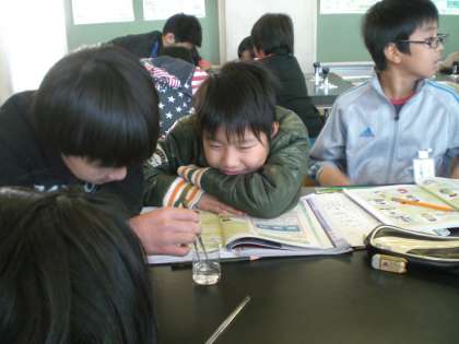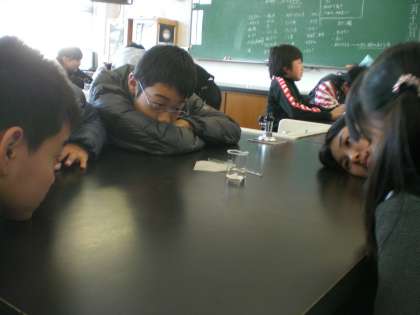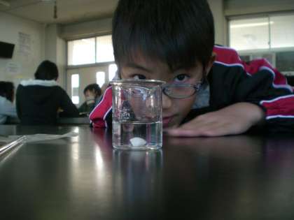 クエン酸の水溶液の中に、石灰石を入れとみると…。