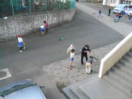 4年生が、「落ち葉掃きをするよ。」とボランティアで落ち葉を集めてくれました。