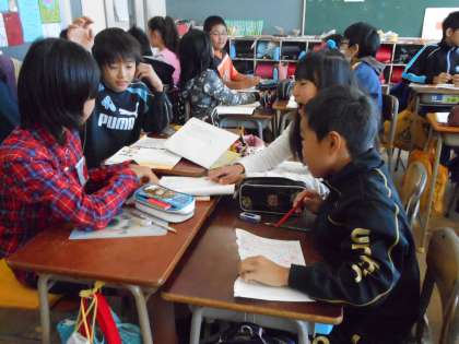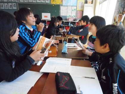 賛成・反対に分かれて、お互いの主張をします。相手に自分の考えを納得してもらうためには、根拠(理由)が大切だとわかりました。賛成・反対どちらの意見もたくさん出せる論題(テーマ)をグループでひとつ決めました。どんな論題にしようかと、グループの中でも様々な意見が飛び交いました。