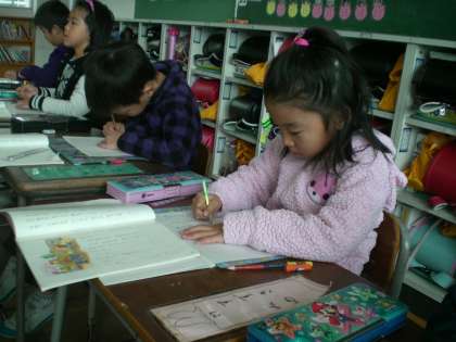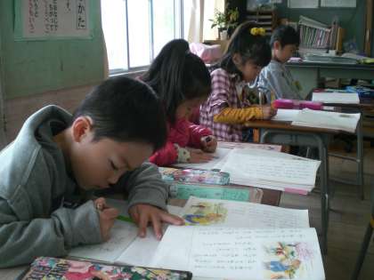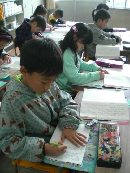 子どもたちは、「…。」を想像して、自分の言葉で書いていました。