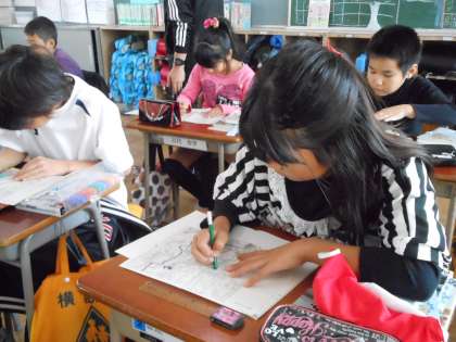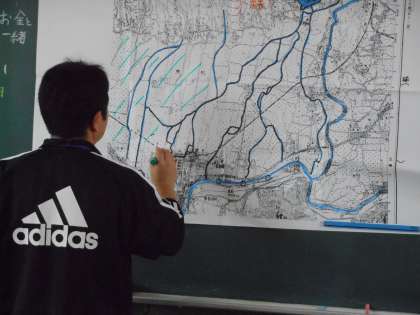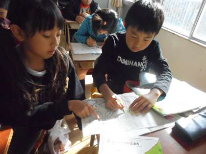 昔の人がどのような思いで沼津の街に田んぼをつくったのか?そして、そのためにどのくらい苦労して水を引いてきたのかを、明治時代の沼津の地図に色を塗りながら考えました。