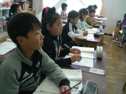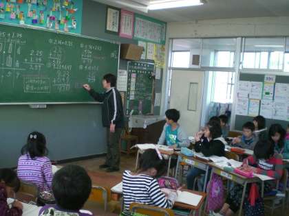 小数の位や10倍1/10などのむずかしい勉強が終わり、たし算に入りました。子どもたちは自信を持って取り組んでいました。小数点をつけ忘れない、小数点以下の0の扱い(最後の0は消す)などを勉強しました。