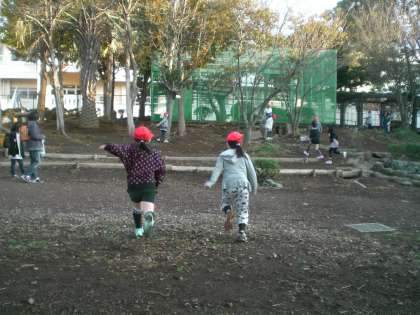 鷹の子森では、低学年の子どもたちが、『だるまさんがころんだ』や『おにごっこ』をして遊んでいました。